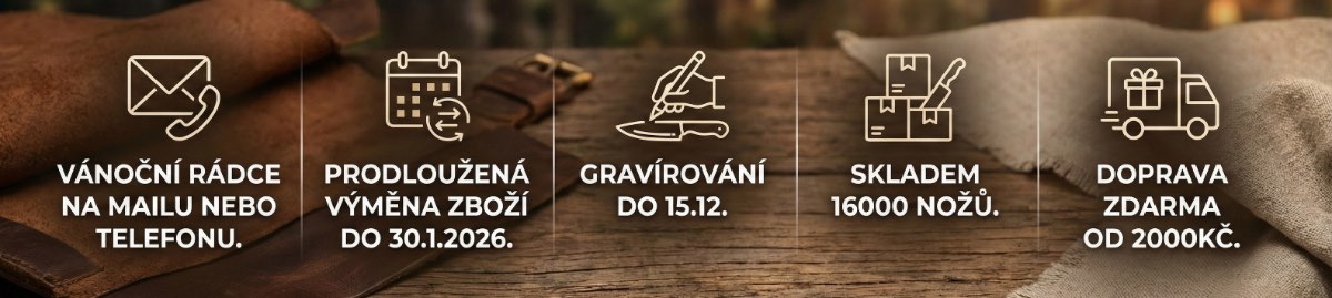 Vážení zákazníci, vítáme Vás v našem nožířství, kde najdete přes 15000 modelů nožů všech druhů. Pokud na dodání spěcháte, sledujte v kategoriích položky s popisem "skladem", u nich máte jistotu, že budou expedovány v den objednávky nebo druhý pracovní den. Na eshopu najdete i tisíce nožů na objednávku, u každého modelu je pak uvedena i informace o přibližné dodací lhůtě.