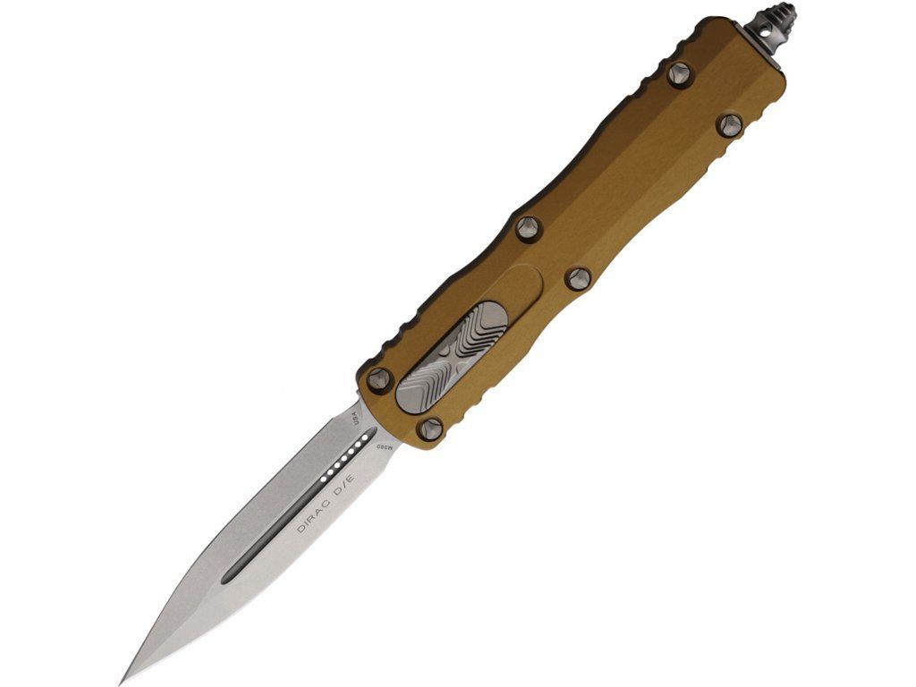 Microtech Dirac je automatický nůž s dvojím účinkem posuvu pomocí jednoho tlačítka. Aktualizované ergonomické šasi se zakřivenými liniemi, podobně jako u nože HALO, přináší odlišný pocit v porovnání s ostatními rukojeťmi. Design tohoto konkrétního OTF nože byl vylepšen a byly použity charakteristické prvky Microtech, které jsou známé svou vysokou kvalitou. Patří sem patentovaný hardware, inovativní vnitřní mechanismus a rozbíječ skla. S celkovou délkou 18,4 cm je nůž Dirac ideální pro každodenní nošení.