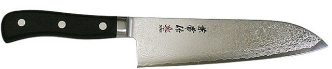 Mezi nejoblíbenější kuchyňské nože patří bezesporu Santoku. Délka nože bývá cca 17 cm, proto je jako univerzální nůž vhodný i pro ženy. Luxusní verzí je damašek, který majiteli nejen usnadňuje práci v kuchyni, ale lahodí i oku.