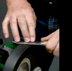 Výrazem „broušení“ v tomto textu rozumíme zejména odstranění vrstvy kovu, jehož cílem je obnova náležitého úhlu u velmi opotřebované čepele (došlo k zaoblení řezné hrany).