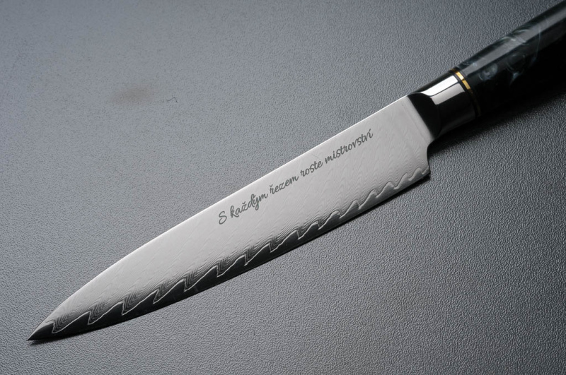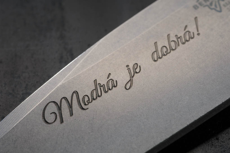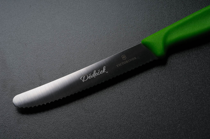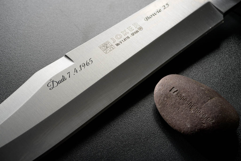 Trvanlivost: Gravírování je trvalé a odolné vůči opotřebení. Váš design zůstane čitelný a ostrý i po dlouhodobém používání nože.