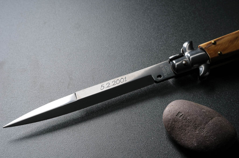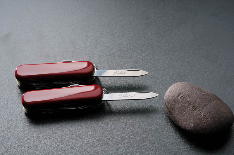Flexibilita: Možnost gravírovat na různé materiály a tvary dělá z této technologie univerzální volbu. Můžete si nechat gravírovat jak kovové čepele, tak i dřevěné rukojeti.