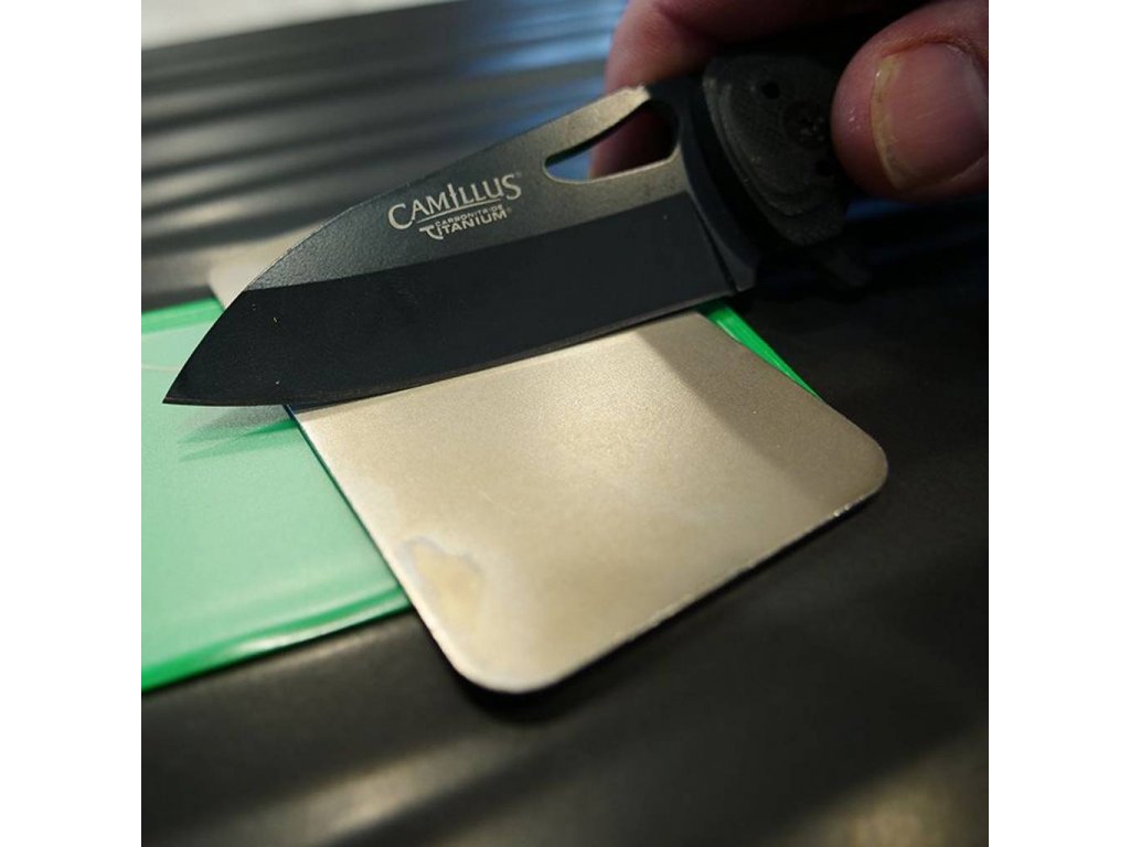 - extra jemným diamantovým kamenem (9 mikronů / 1200 mesh) pro vyleštění a zjemnění ostří po broušení hrubším diamantem.