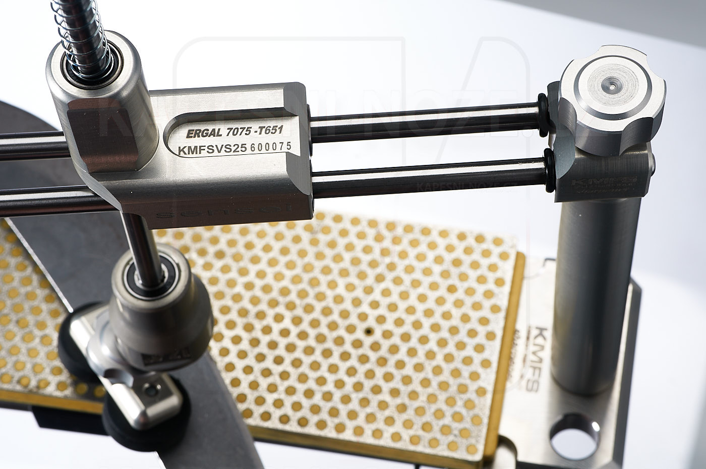 KMFS je český výrobce nabízející vysoce kvalitní systém ostření. Sada na ostření je vyrobena s maximální přesností, což umožňuje velmi přesné ostření nožů. Lze ji také rozšířit o širokou škálu příslušenství, jako jsou jemnější brousky, kožené řemínky, diamantová pasta, organizéry a další. Vzniká tak komplexní nástroj pro perfektní ostření nožů.