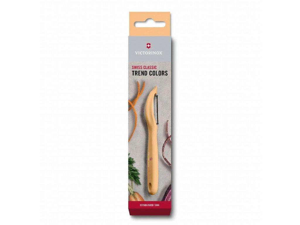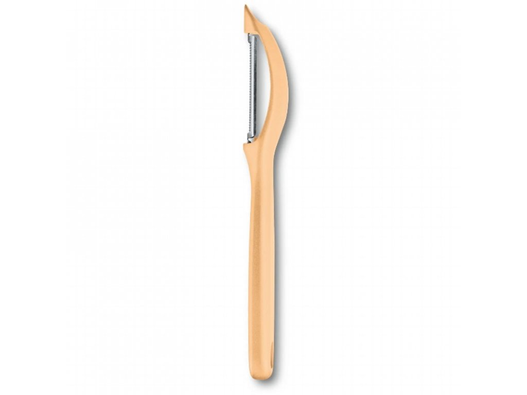 Universalschäler aus der Schweiz mit ergonomischem Griff und Kartoffelnetzentferner. Klinge aus rostfreiem Kohlenstoffstahl. Spülmaschinenfest