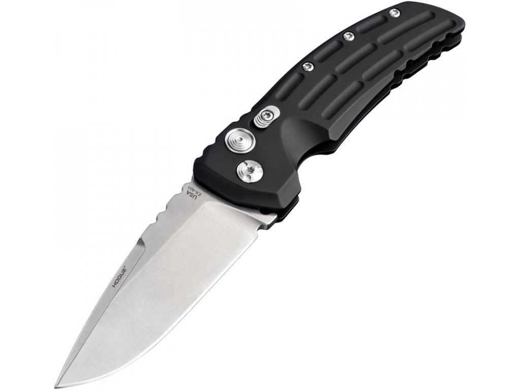 Automatic opening. 4.5" (11.43cm) closed. 3.5" (8.89cm) tumbled finish 154CM stainless drop point blade. Black anodized aluminum handle. Pocket clip. Manual safety. Hidden lanyard hole. Boxed.Zusätzliche Parameter