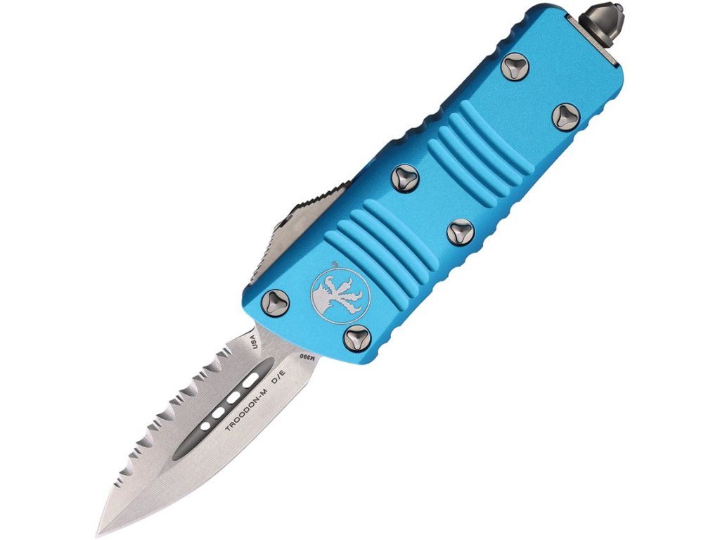 Das Troodon® Mini ist nur geringfügig kleiner als das reguläre Troodon®-Modell, hat ein schlankes Design, einen Drei-Finger-Griff und einen leichteren Feuermechanismus. Dieses Design ist für einen größeren Benutzerkreis gedacht, der von den nützlichen Eigenschaften des OTF für das tägliche Tragen profitiert, ohne ein schwereres Messer als das Troodon® in Originalgröße zu benötigen. Es ist sogar klein genug, um als Geldklammer zu dienen, aber dennoch so konzipiert, dass es bei Bedarf wie ein vollwertiges Messer funktioniert.