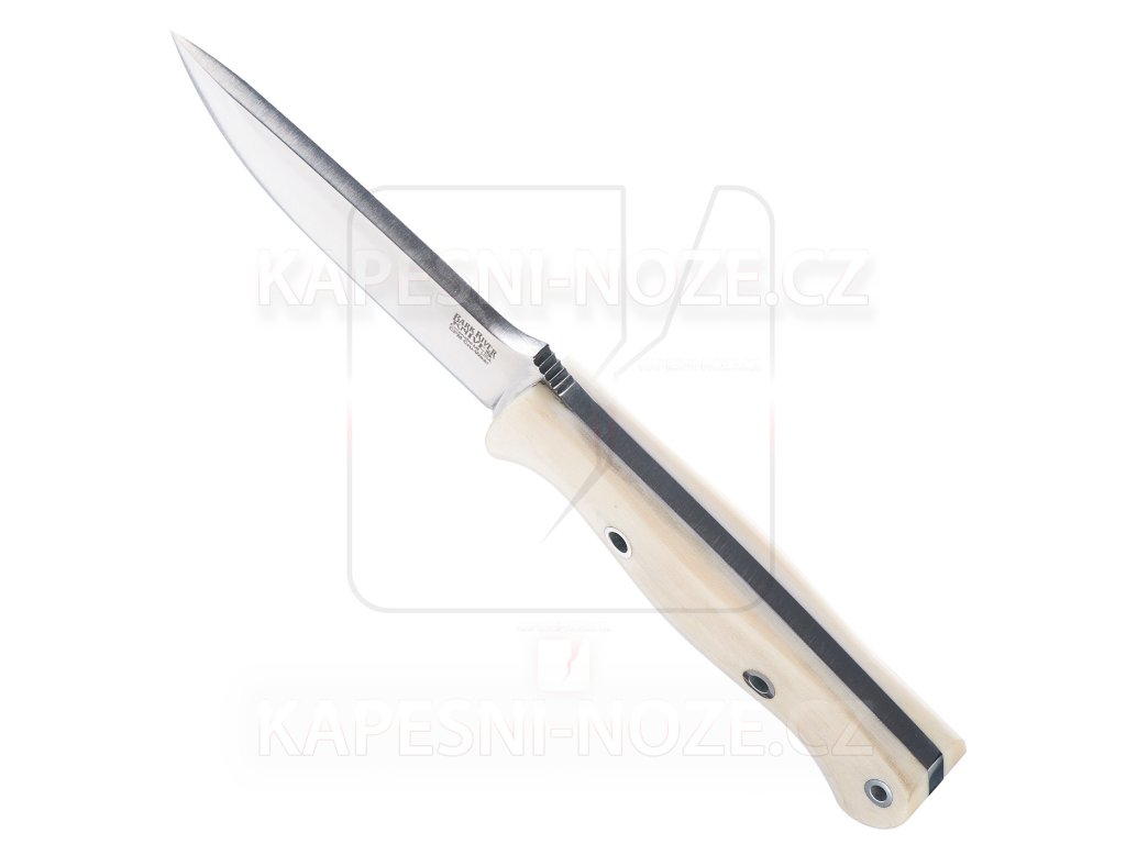 The Antique Bone Micarta handle not only offers an impressive classic look, but also excellent resistance to moisture, temperature changes, and long-term wear. Micarta provides a secure and stable grip even when wet, while hollow pins emphasize the detailed craftsmanship typical of Bark River knives. The total length of the knife is 23 cm, which ensures an ideal balance between robustness and maneuverability.