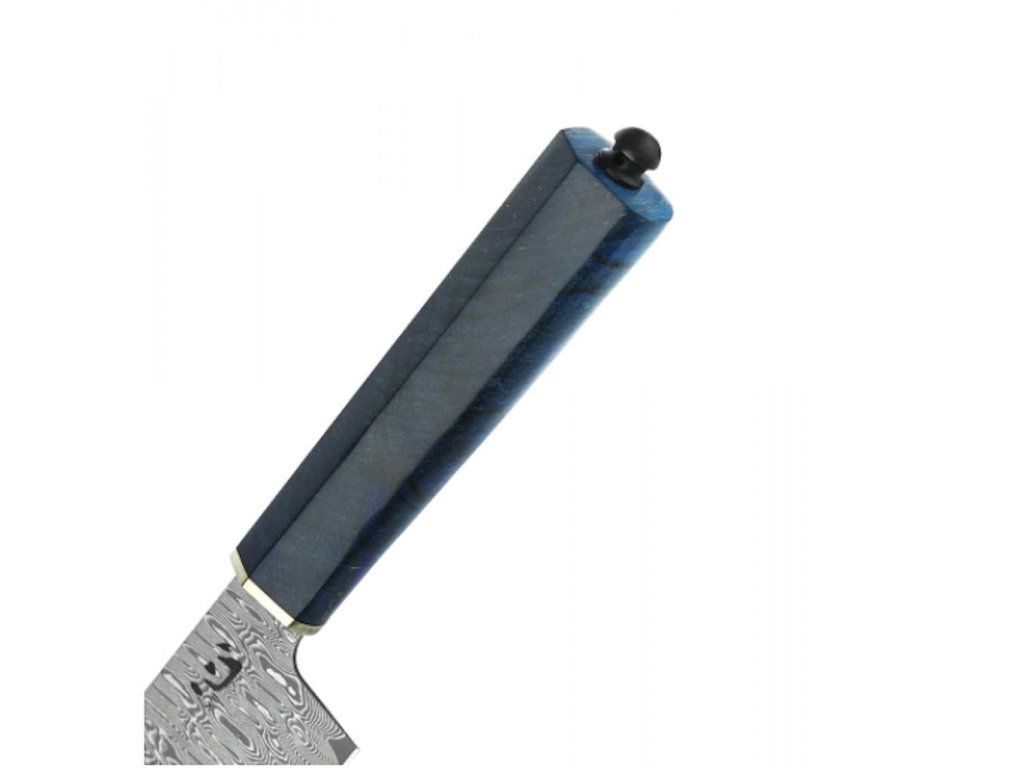 Dieses Kochmesser wird von hochqualifizierten Handwerkern mit jahrzehntelanger Erfahrung in der Herstellung von Messern handgefertigt. Mit einer sehr dünnen Klinge, geschmiedet aus 67-lagigem Damaststahl mit einem VG10-Kern, der eine Härte von HRC61+/-1 aufweist, ist dieses Messer extrem scharf. Stabilisiertes, gepaartes Ahornholz in Blau und Messing auf den Griffabstandshaltern sorgt für maximale Stabilität und Korrosionsschutz und bietet eine schöne und elegante Verarbeitung. Das Messer ist außerdem gut ausbalanciert und verfügt über eine Vollerl-Konstruktion, was es zu einem sehr handlichen Werkzeug für die meisten Küchenanforderungen macht.