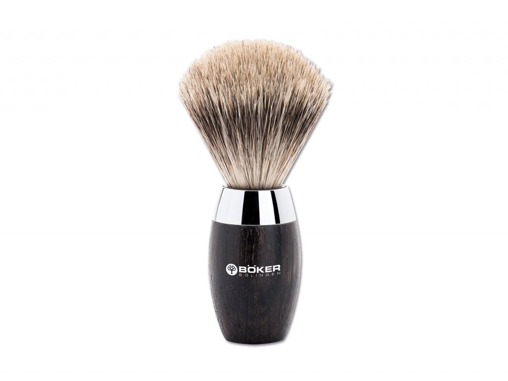 Dieser Rasierpinsel ist mit feinem Dachshaarausgestattet. Das seltene Material des Griffs ist keine eigene Holzart, sondern besteht aus Holz, das vor vielen Jahrhunderten in einem Torfmoor versunken ist und verschiedene Veränderungen erfahren hat. Ringgröße M 21 mm, Maße: 35 mm x 110 mm.
