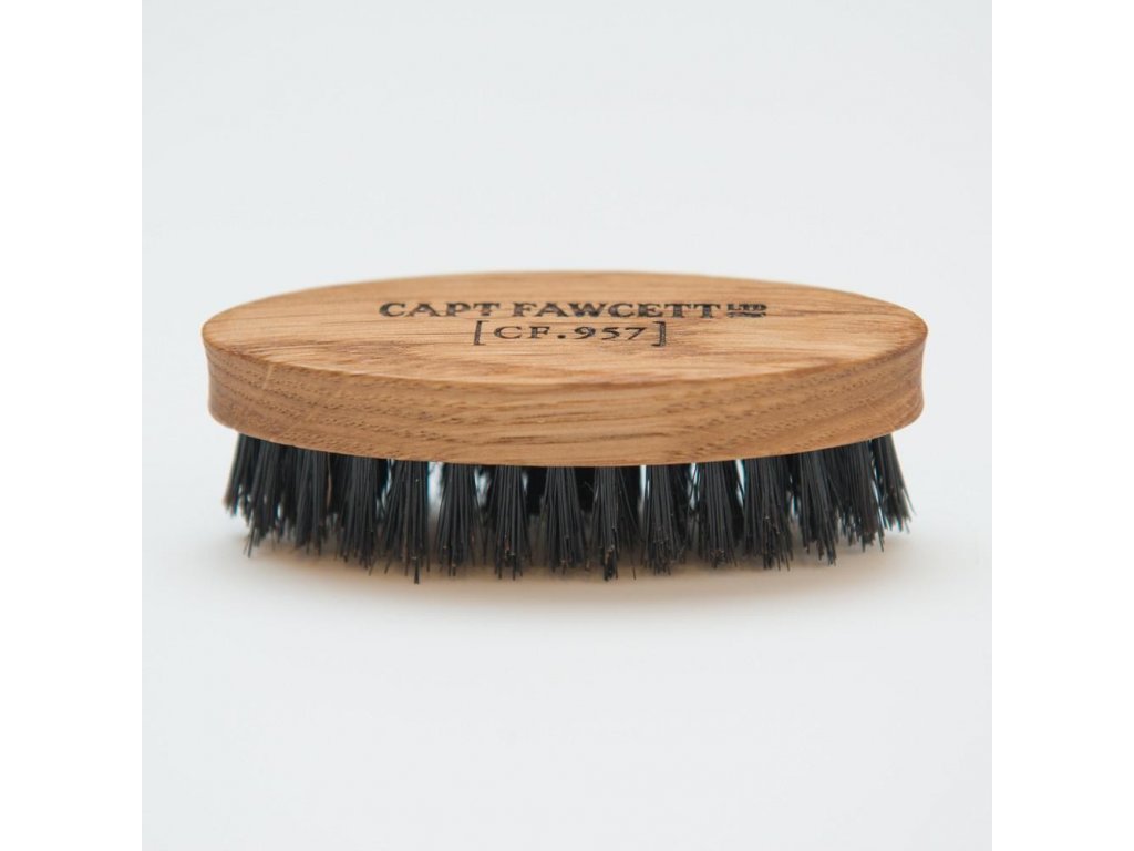 - eine stilvolle Qualitätsbürste mit starken Naturborsten zum Kämmen und Pflegen von Bärten