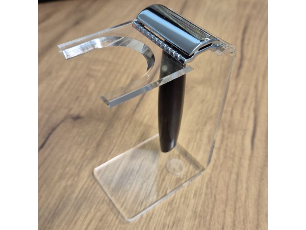 Ständer für Rasiermesser und Rasierpinsel. Hergestellt aus klarem Acryl, elegant und stoßfest. Rasiermesser und Bürste nicht enthalten.