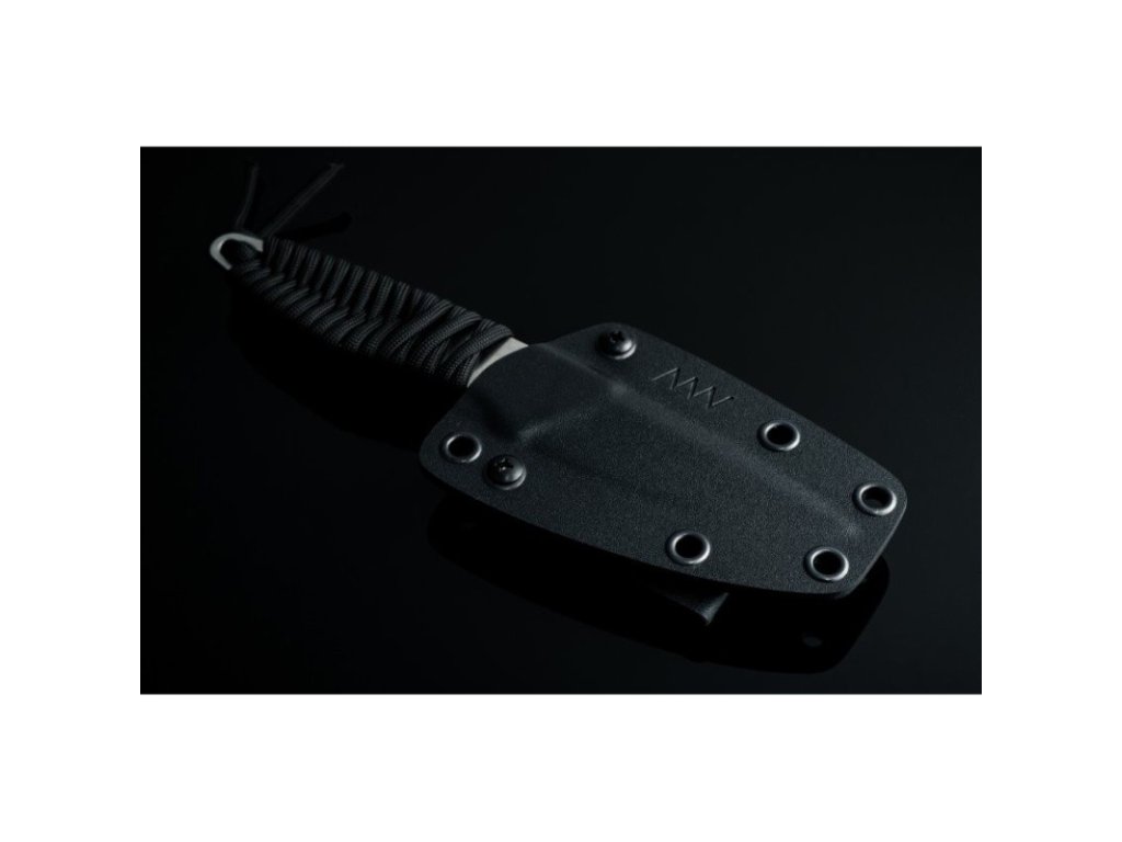 Wir liefern ihn mit einer vollständig variablen Scheide aus Kydex®-Material, die in allen Positionen sowohl für Rechts- als auch für Linkshänder befestigt werden kann.