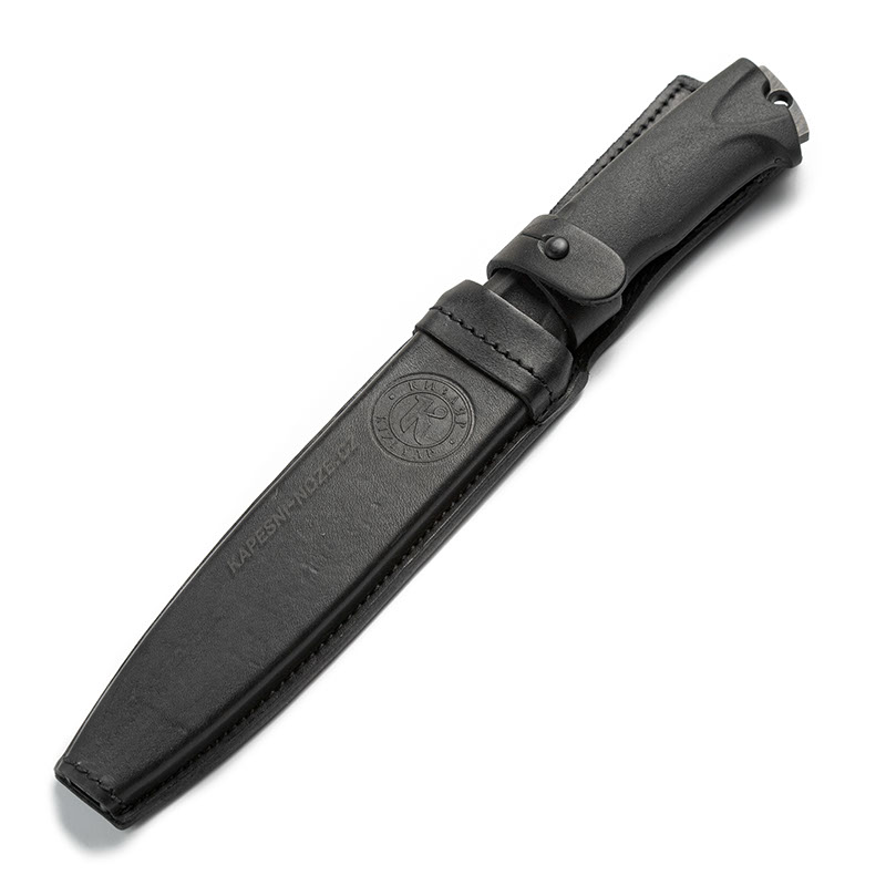 Nůž je dodáván s kvalitním koženým pouzdrem.