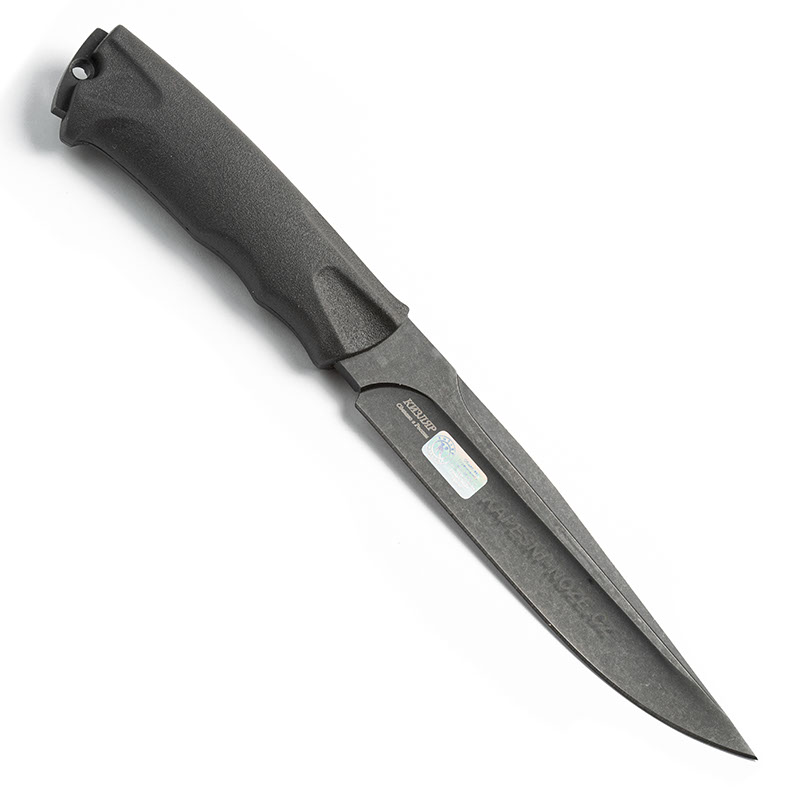 Jedná se o Full-tangový vojenský nůž používaný ruskou armádou včetně speciálních jednotek. Pogumovaná rukojeť skvěle sedí do ruky a houževnatá pěti milimetrová čepel skvěle poslouží i při dost hrubé práci.