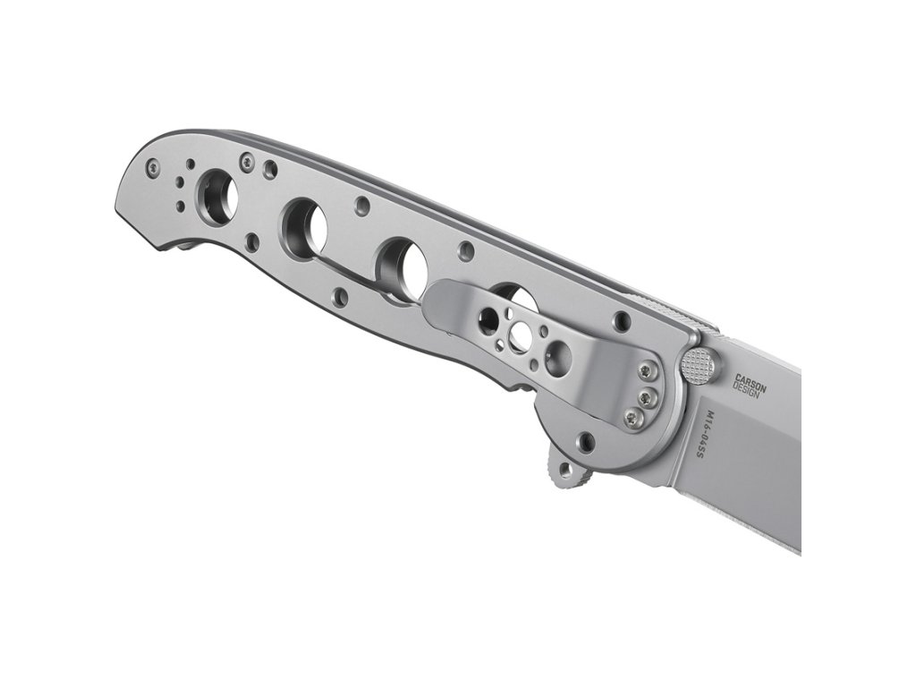 Das beliebte M16®-Design des verstorbenen Kit Carson kehrt in einer Serie aus rostfreiem Stahl zurück. Das M16®-04SS behält alle beliebten Eigenschaften der taktischen Klappmesser von Kit bei und wurde zu einem alltagstauglichen Messer umgestaltet, was ihm noch mehr Kraft und Leistung verleiht. Die Tanto-Klinge aus Sandvik 12C27™-Edelstahl sorgt für eine hervorragende Schnitthaltigkeit und ist mit einem Perlstrahl-Finish versehen, das unerwünschte Blendungen und Reflexionen reduziert. Das M16®-04SS Messer aus rostfreiem Stahl basiert auf einem echten Klassiker und ist die Rückkehr eines ganz anderen Kalibers.