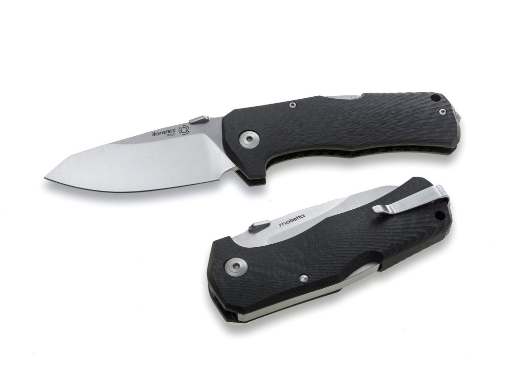 Griff aus Carbon Fiber, Klinge aus Sleipner Satin Finish. Neues "Solid Knife" von Lionsteel, sollte im Frühsommer 2014 erhältlich sein. Solid LockBack Micarta Griff. ist aus einem Stück Micarta oder Carbon gefertigt, je nach Modell. Die Klinge ist aus Sleipner-Stahl gefertigt, auf eine Härte von 61 HRC gehärtet und mit einem Backlock gesichert. Gewicht 130g (Micarta) oder 127g (Carbon) Die Glasbrecherspitze ist aus Wolfram/Carbon gefertigt. Am zentralen Drehpunkt kommt das IKBS-System zum Einsatz, d.h. Kugellager für eine perfekte und reibungslose Funktion.Zusätzliche Parameter