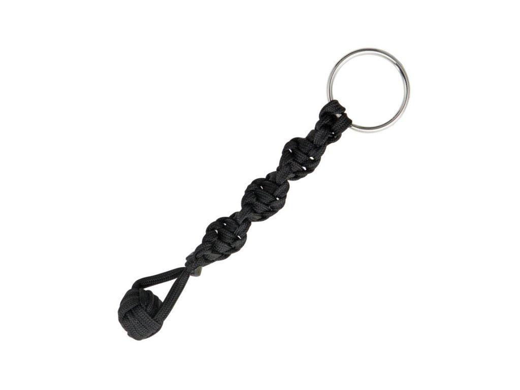 Na jednom konci má kovovou kuličku ovázanou paracordem na druhé straně klíčenku