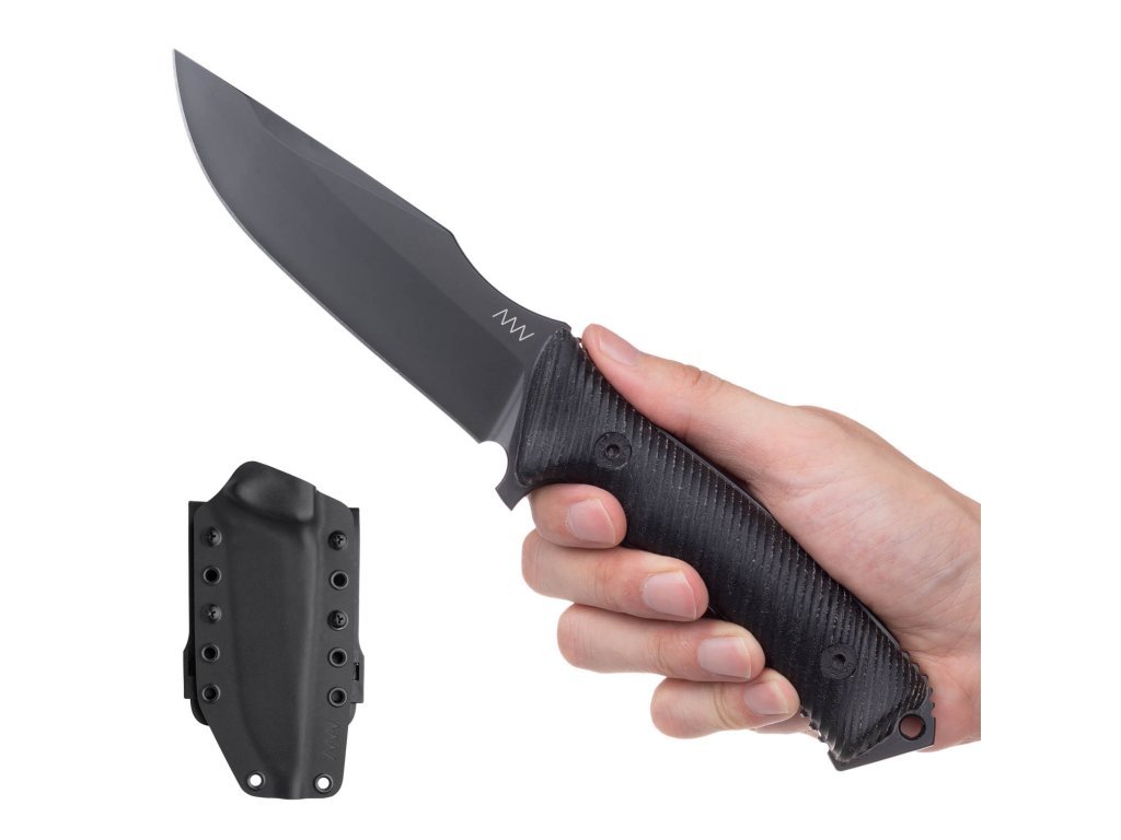 The blade is made from one of the best steels in the world, Swedish Elmax. This premium steel runs through the entire body of the knife, right down to the very base of the handle, which is fitted with a glass-breaking tip. The blade is coated with an extremely durable DLC (Diamond-like Carbon) finish that minimizes glare, prevents corrosion and gives the steel surface great sliding properties. The handle is made by 3D turning from Micarta material, which thanks to its shape and grooves fits perfectly in the hand and gives the knife a secure grip in any situation. The knife is equipped with a safety paracord bracelet to prevent it from falling out of the hand during chopping techniques. The whole construction is held together by a combination of solid threaded bushings and four M5 screws also coated with DLC. Comfortable, reliable and safe carrying of the knife, we provide a self-locking kydex sheath, which is equipped with holes for attachment to the system