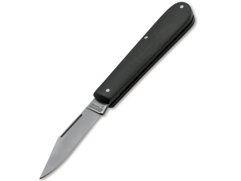 The Böker Barlow with its extended bolsters and wide blade is a milestone in Böker's model history. This integral design version of the timeless classic features a moulded handle body in dark Micarta, which is milled from a single solid piece. The lightweight construction means that additional metal inserts can be dispensed with entirely. Thanks to the similarly shaped handle shanks made of black canvas Micarta, this modern knife for gentlemen is extremely comfortable in the hand. The blade is made of ice-hardened N690 material. This handy knife is perfectly pocketable, yet large enough to easily handle most everyday tasks. Handmade in the Böker knife manufactory in Solingen.
