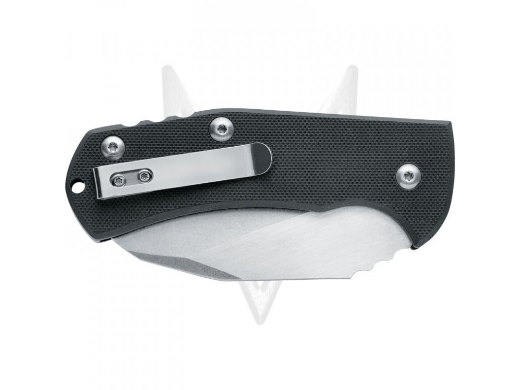 An interesting knife with high quality 440C steel, high solid blade, G10 handle with belt clip folding option.