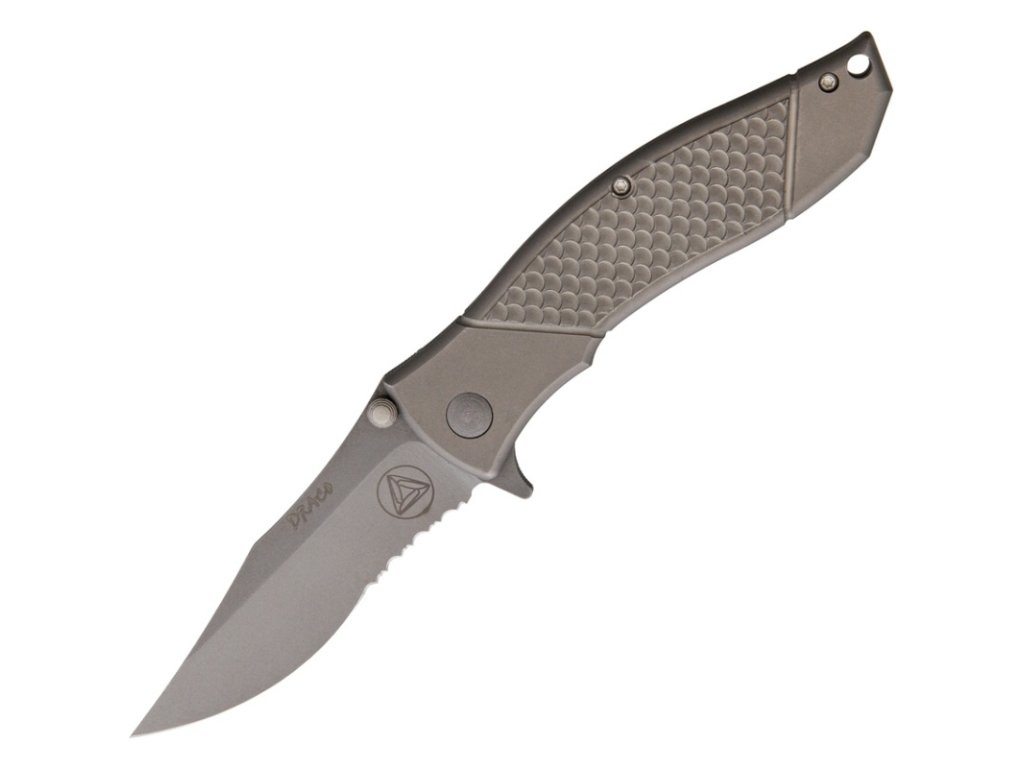 Length when closed 12 cm. Blade length 8.9 cm. Dark grey CPM-S30V finish, partially serrated blade, assisted opening. Dark grey finish on titanium handle. With lanyard hole. Pocket clip. Black nylon sheath.