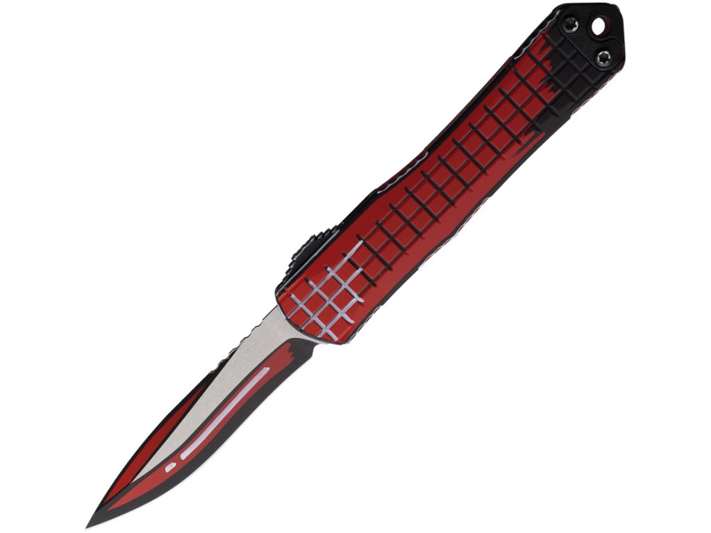 The design is complemented by striking red celluloid shading on the blade and handle, which gives the knife a distinctive look.