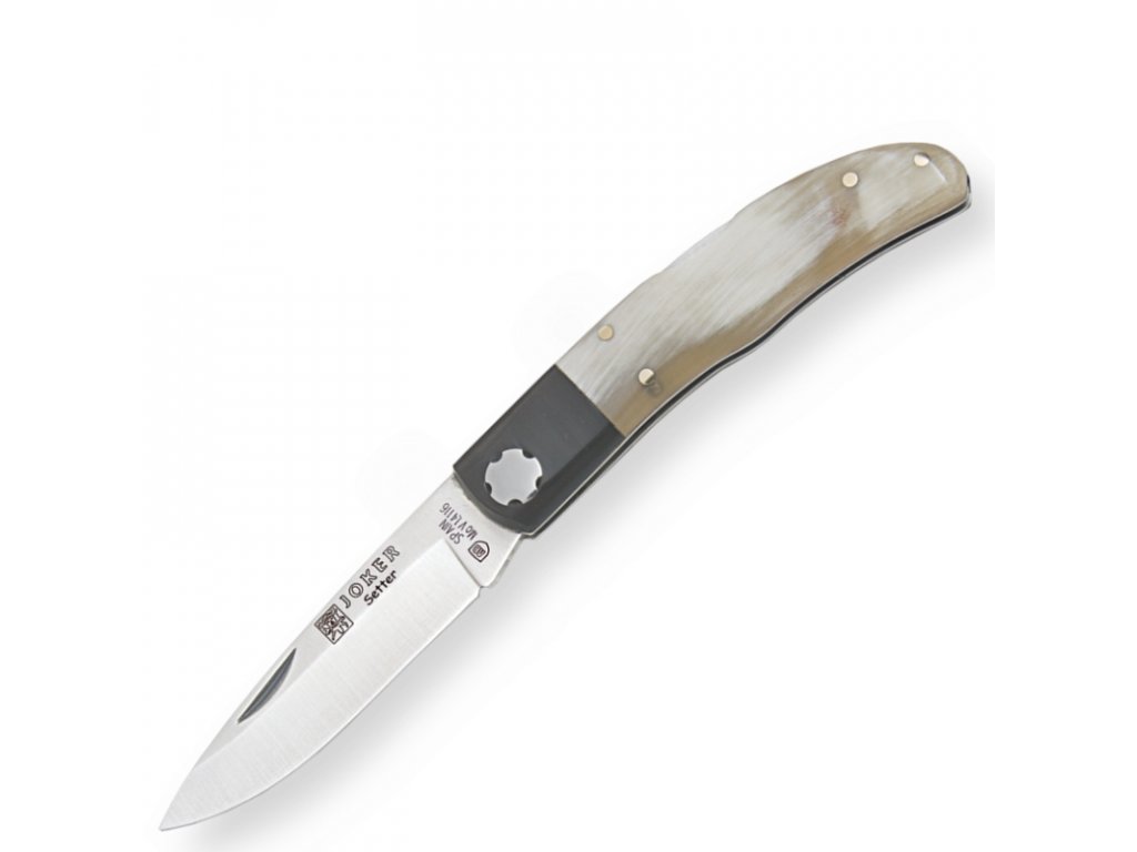 Spanish knives Joker is a world-renowned brand based in the city of Albacete, in the Autonomous Community of Castile-La Mancha. Joker comes from an area known for its excellent craftsmen, whose art is carefully transferred into each handmade knife. Since its foundation in 1987, Joker Knives has always strived to combine traditional craftsmanship and state-of-the-art technology in its products. In the manufacturer's range you will find, among other things, sporting fixed blade knives of all kinds, such as bushcraft, hunting or survival knives. When it comes to sporting folding knives it also offers bushcraft, survival, hunting knives for hunters, in short pocket knives for any need. Joker Spain's strengths are the frequent use of natural materials for the blades such as olive or walnut wood for its products and real deer antlers for its hunting knives. Made in Spain