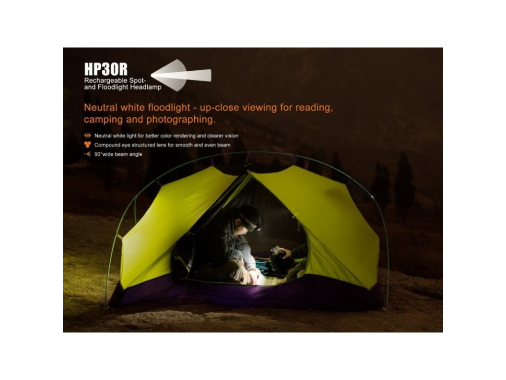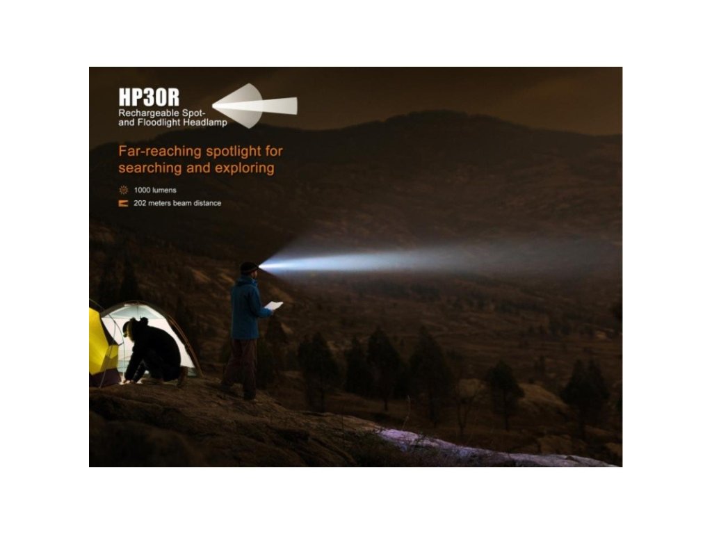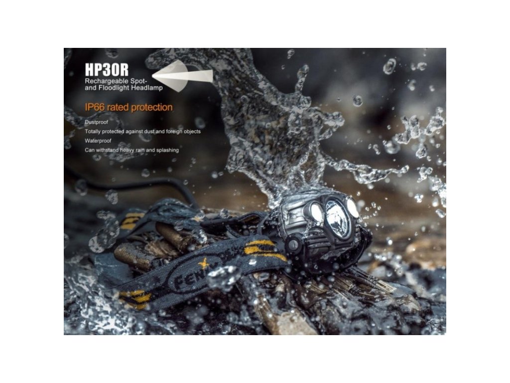 Nabíjecí čelovka Fenix HP30R nabízí bezkonkurenční výkon až 1750 lumenů (ANSI) a dosvit 202 metrů. Výborného výkonu bylo dosaženo použitím výkonné LED Cree XM-L2 a dvojice LED Cree XP-G2 R5 s teplejším odstínem světla. Čelovka je vybavena dálkovým reflektorem a dvojicí menších reflektorů s širším kuželem světla (90°). Oba reflektory jsou ovládány odděleně a lze jejich funkce libovolně kombinovat. K napájení používá dva Li-ion akumulátory typu 18650 2600 mAh, které jsou součástí balení a lze je dobíjet přímo v bateriovém pouzdru přes micro USB konektor.