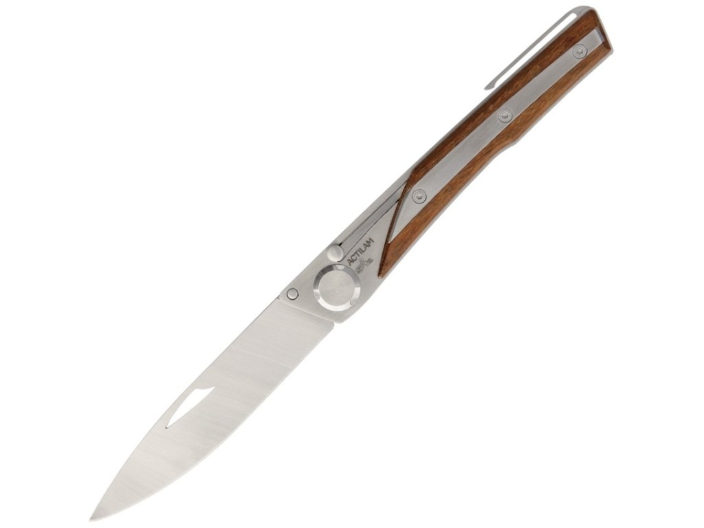Length when closed 12 cm. Blade length 8,5 cm. Blade made of 14C28N steel, brown wooden handle. With clip.