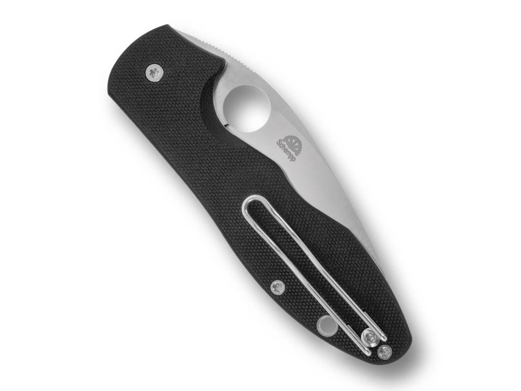 Designed in cooperation with renowned custom knifemaker Ed Schempp, this model from Spyderco represents a distinctive approach to the modern EDC folding knife. The dramatically curved, full-flat-ground blade reshapes cutting dynamics in a noticeable way. Its negative blade angle increases cutting leverage and excels in powerful draw cuts. The recurved edge naturally pulls material into the cut, enhancing control when slicing cardboard, plastics, or heavy fabrics.