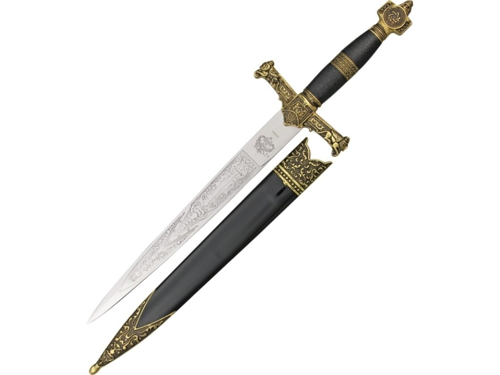Leptaná čepel. Černá hliníková rukojeť s dekorativním mosazným reliéfním chráničem prstů a pommel. Konec rukojeti představuje Davidovu hvězdu. Černá lakovaná pochva s mosazným lemem.