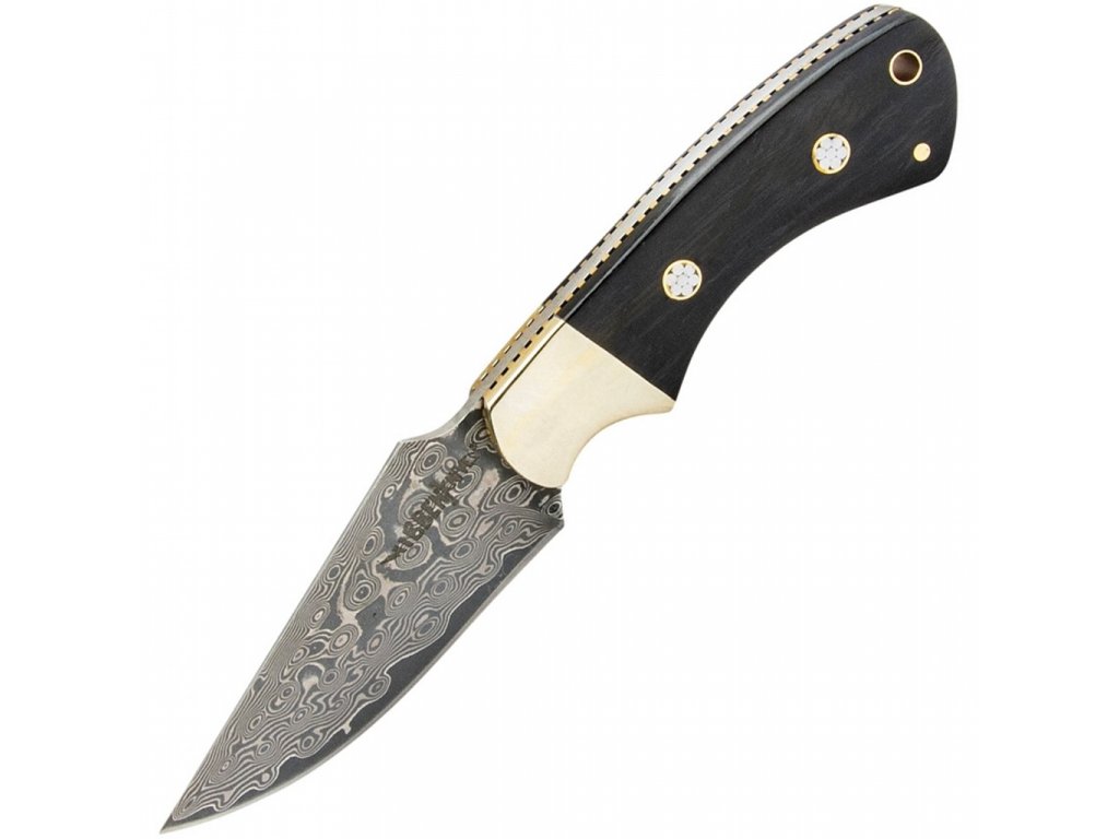 Extraordinary knifemaker Gil Hibben continues to design exceptional knives for everyday use. His Damascus Sidewinder is a smaller fixed blade designed to fit comfortably on the hip in a premium leather belt sheath. It features a sharp damascus steel blade and a black pakkawood handle that fits comfortably in the hand. The knife's full-tang construction not only makes it a practical choice for a sturdy blade for everyday use, but in typical Hibben knife fashion, it's also visually pleasing with its brass accents and decorative guard.
