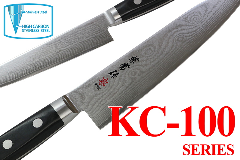 The Kanetsune Seki KC-100 and KC-0200 kitchen knife sets are made of 33-ply damascus with a core of Japanese VG-10 steel, which provides excellent cutting performance.