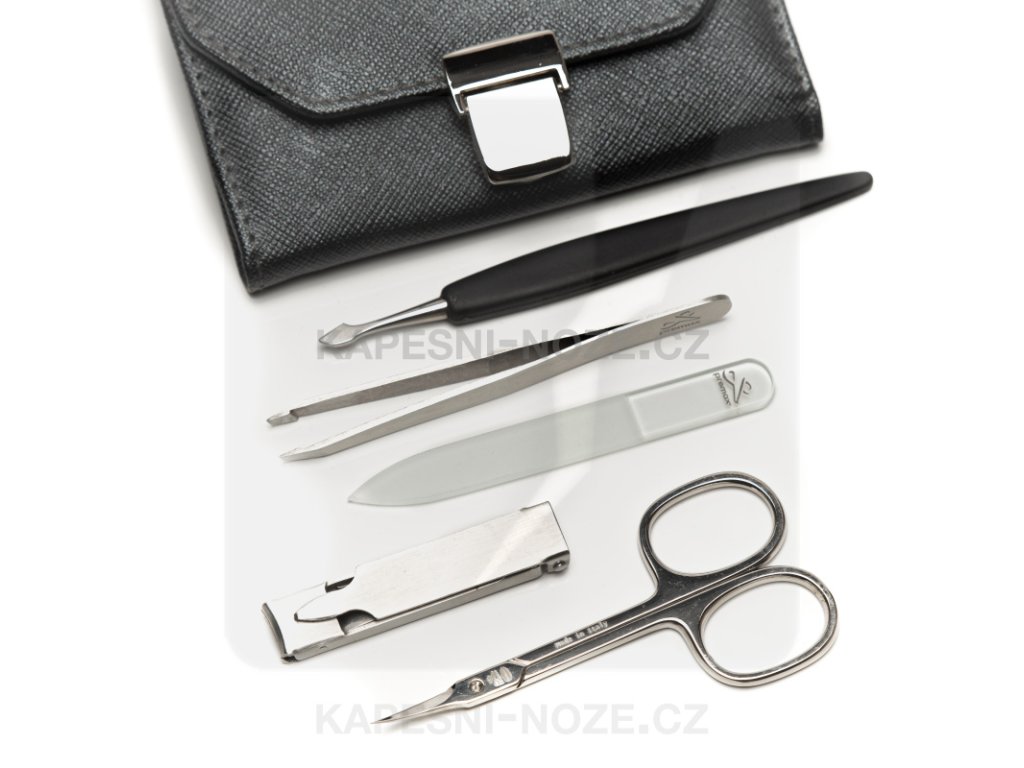 5 piece manicure set in black leather case with magnetic closure. The Classica range features tools made of the finest C50 carbon steel, which is then nickel plated. The long experience in the production of this range ensures high quality standards in terms of precision, cutting capacity and long lasting sharpness.