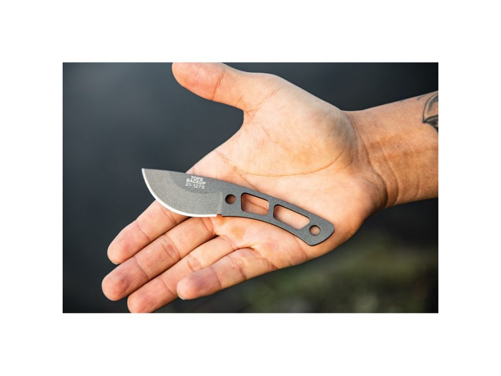The TOPS Backup was designed specifically to be carried with the Hammer Hawk knife, but will work great as a backup to any larger knife. Many of the cutting tasks people encounter in practice can be accomplished with short-bladed knives. So when a tomahawk is too big, there's the TOPS Backup to handle it.