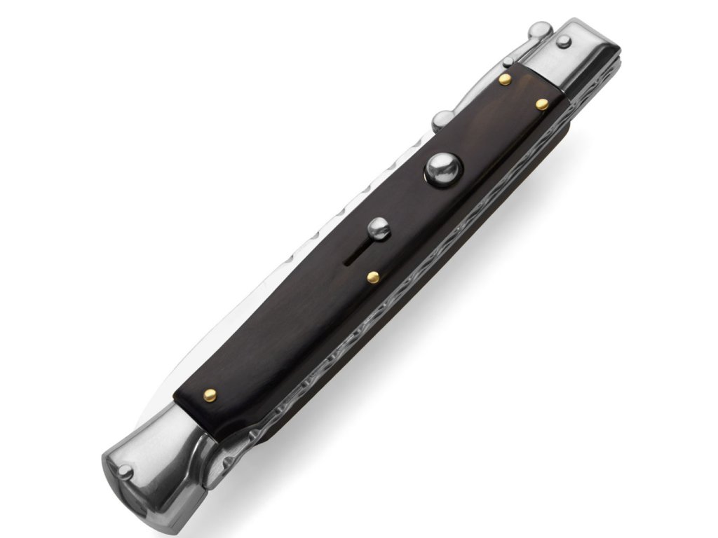 A striking detail that often makes the difference for connoisseurs is the delicate hand sawing on the spring. This element not only emphasizes the craftsmanship of the workmanship, but also gives the knife a touch of traditional elegance and collector's value. Combined with a very favorable price-quality ratio, the result is a knife that will appeal to both fans of classic Italian switchblades and users looking for a stylish automatic knife for everyday carry or for their collection.