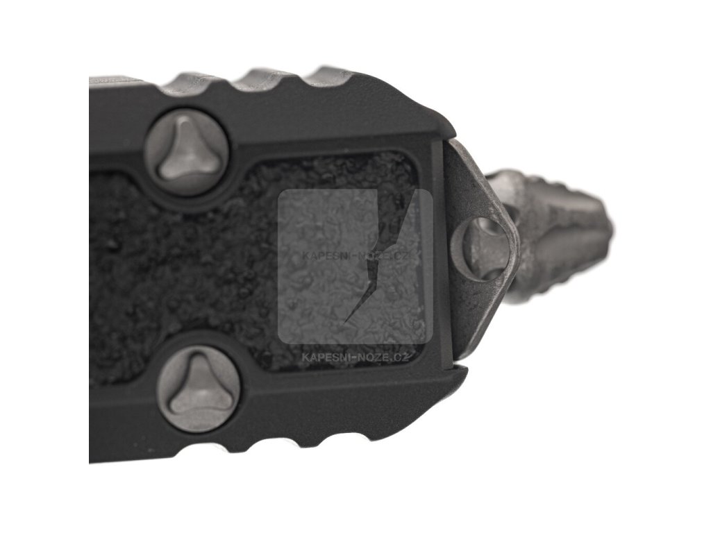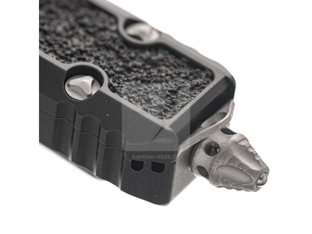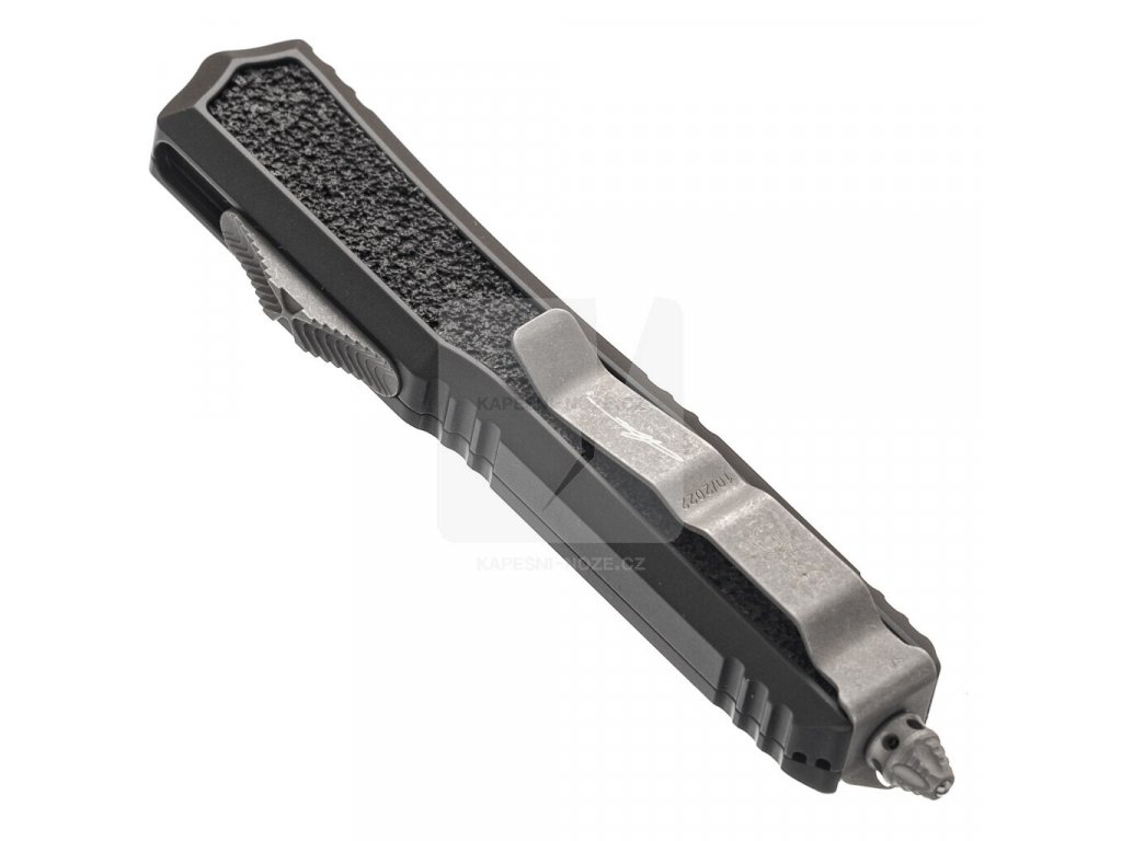 This new Microtech Makora Signature Series dagger features a premium steel blade in an apocalyptic design. The handle of this automatic ejector knife is made of black anodized aluminum with black rubberized inserts for maximum grip and internal nickel -borne features. The pocket clip features the Fire Ant logo with a durable finish, integrated glass breaker and stainless steel hardware. This Makora is a fully automatic switchblade with a double-action out-the-front mechanism.