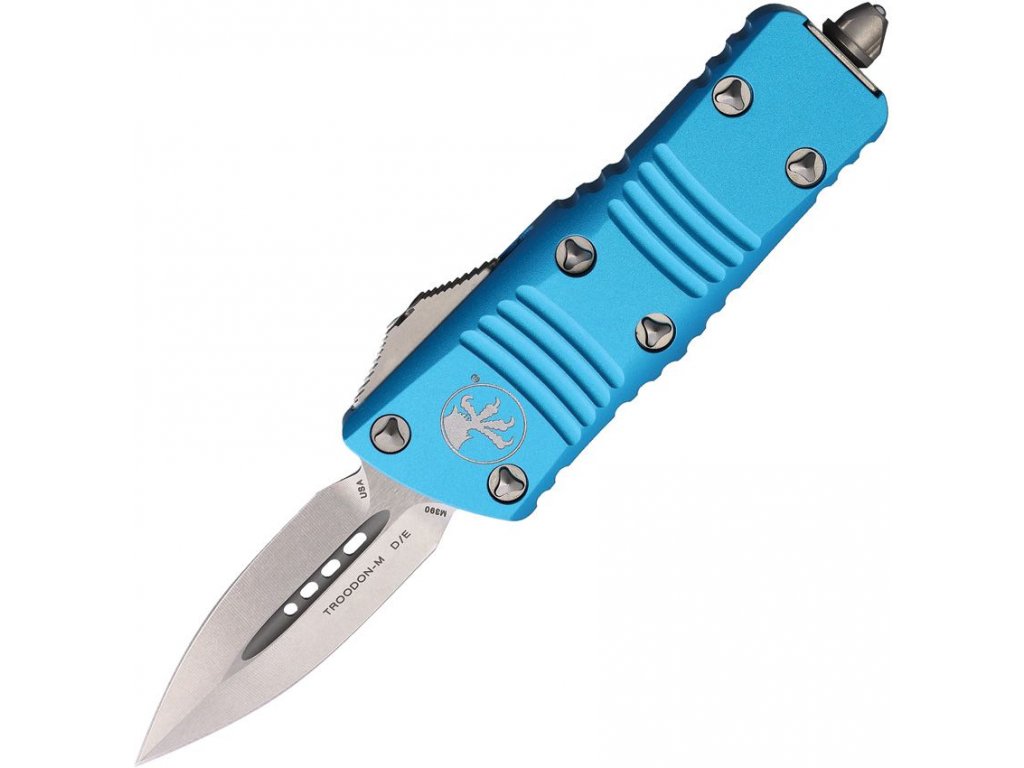 The Troodon® Mini is just a fraction smaller than the regular Troodon® model, with a slim design, three-finger grip and easier to fire mechanism. This design is intended for a wider range of users who will take advantage of the utilitarian features of the OTF for everyday carry without a heavier knife than the full-size Troodon®. It's even small enough to be a money clip, yet designed to function as a full-sized knife when needed.