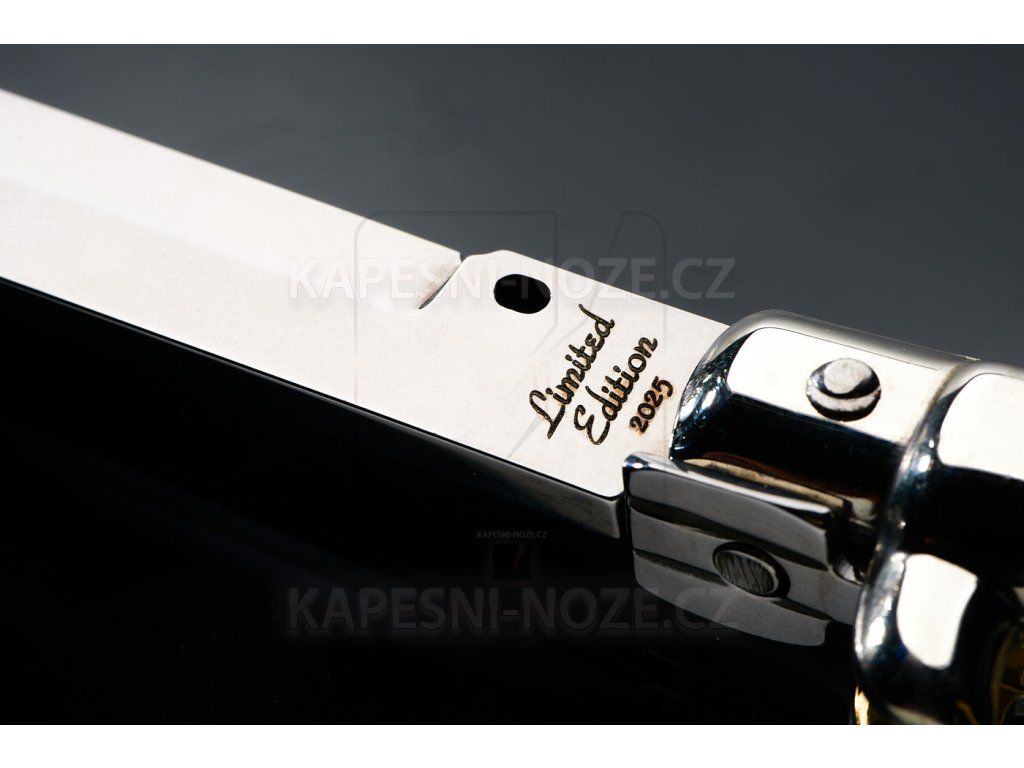The combination of traditional methods and modern materials guarantees smooth blade opening with a characteristic metallic click that every collector will recognize. The steel achieves high hardness and maintains its edge even after long use, while the hand-polished bolsters and precisely machined handle give the knife a luxurious look and a comfortable grip.