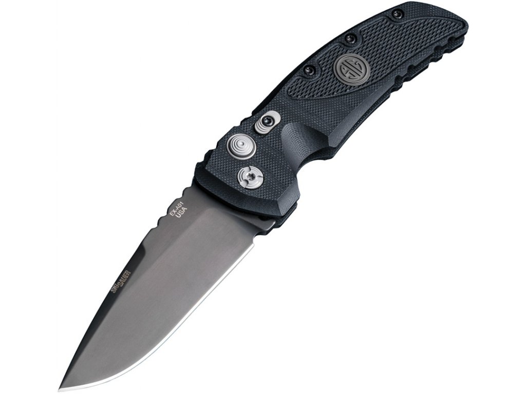 The Sig Sauer EX-A01 knife design combines a sleek exterior and premium materials with an over-engineered frame that supports an extremely sharp blade.