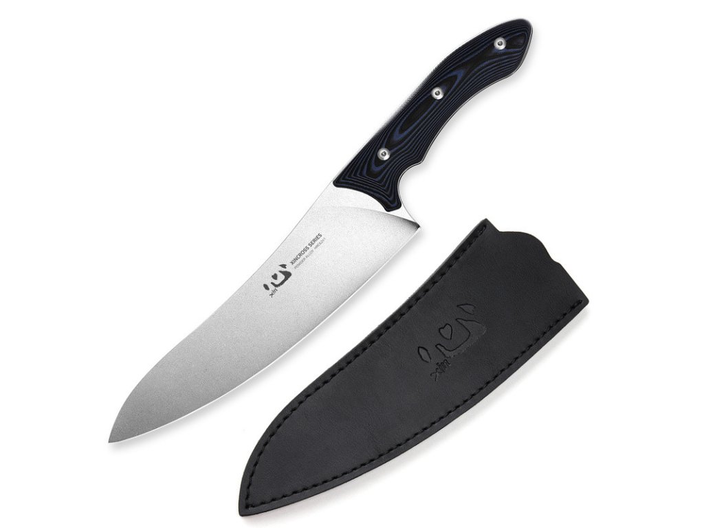Nože řady XinCross jsou designovým spojením kuchyňského a outdoorového nože. Čepel je z velmi tvrdé práškové oceli, kalené na 61-62 HRC. Rukojeť je vyrobena z dvoubarevně prokládaného materiálu G10, který je velmi odolný proti korozi a trvanlivý při používání. Součástí balení je i černé kožené pouzdro. Tento nůž si zaslouží vyzkoušení pro každého, komu záleží ostrosti a komfortním zážitku při vaření.