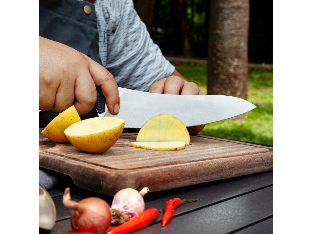 - nůž používejte ke krájení ovoce, zeleniny, ryb a masa bez kostí.