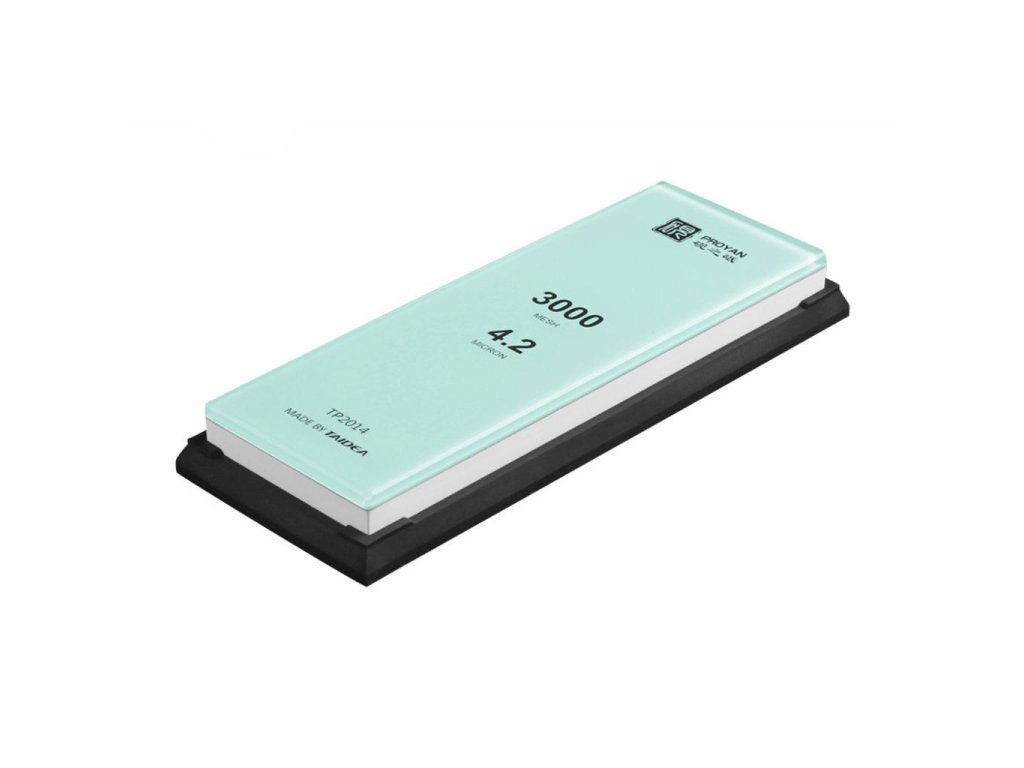 Řada brusných kamenů Taidea Glass Proyan obsahuje bílý korund, jeden z nejtvrdších minerálů na světě, a je kombinován s podkladem z tvrzeného skla. Tento typ brousku ubývá mnohem pomaleji než klasické vodní kameny, a před použitím jej není třeba namáčet do vody (stačí ho jen postříkat vodou). Důležitým faktorem je, že můžete brousek používat až do konce, neboť sklo zabraňuje destrukci kamene, i když na něm zbývá několik milimetrů brusného materiálu.