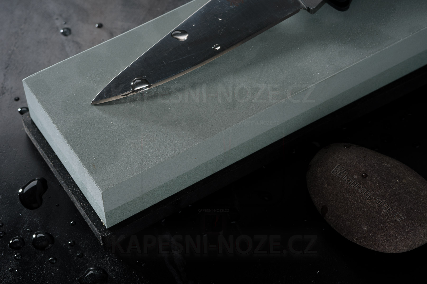Druhá strana kamene má jemnější zrnitost 1500, což je ideální pro dokončení broušení. Tato strana kamenem vytvoří jemnější ostří, které zajistí konečnou ostrost nože. Tato strana také pomáhá odstranit zbytky oceli a zanechává noži vyšší lesk.