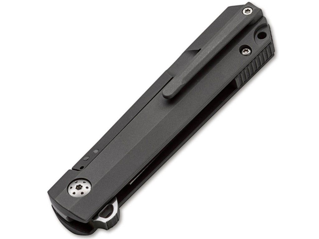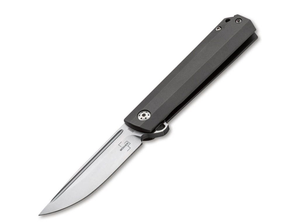 Jako kombinace moderního EDC a kvalitního pánského nože Böker Plus Cataclyst přesvědčí na celé čáře. Stabilní čepel ze satinovaného D2 se otevírá kuličkovým ložiskem flipperem a je opatřena plochým výbrusem a oboustranným vydlabáním. Je spolehlivě uzamčena zesíleným zámkem Framelock. Drážky v oblasti opěrky palce a na distanční podložce navíc zvyšují bezpečnost práce. Přímočará konstrukce je vybavena stupnicemi rukojeti z vysokopevnostního titanu, které jsou trojrozměrně frézované a na vnitřní straně mají prohlubně snižující hmotnost. Odolná rukojeť a hluboký zásobník (tip-up/r), rovněž trojrozměrně vyfrézované z masivu, mají matnou povrchovou úpravu beadblast.