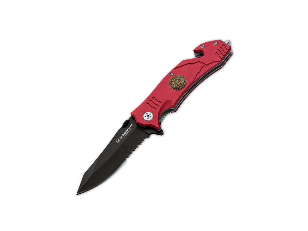 MAGNUM RESCUE - Tato řada funkčních záchranářských nožů je věnována všem záchranářům, kteří při službě dávají ze sebe všechno a často riskují své životy pro ostatní. Výbava těchto záchranářských nožů nabízí množství funkcí pro každou misi: rozbíječ skla, řezač opasků, kapesní klip a robustní čepel z nerezové oceli 440.