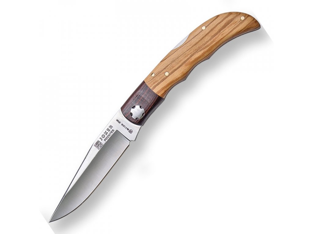 Elegantní zavírací nůž Joker Pointer se střenkami z olivového dřeva a bolstru z redwood stamina