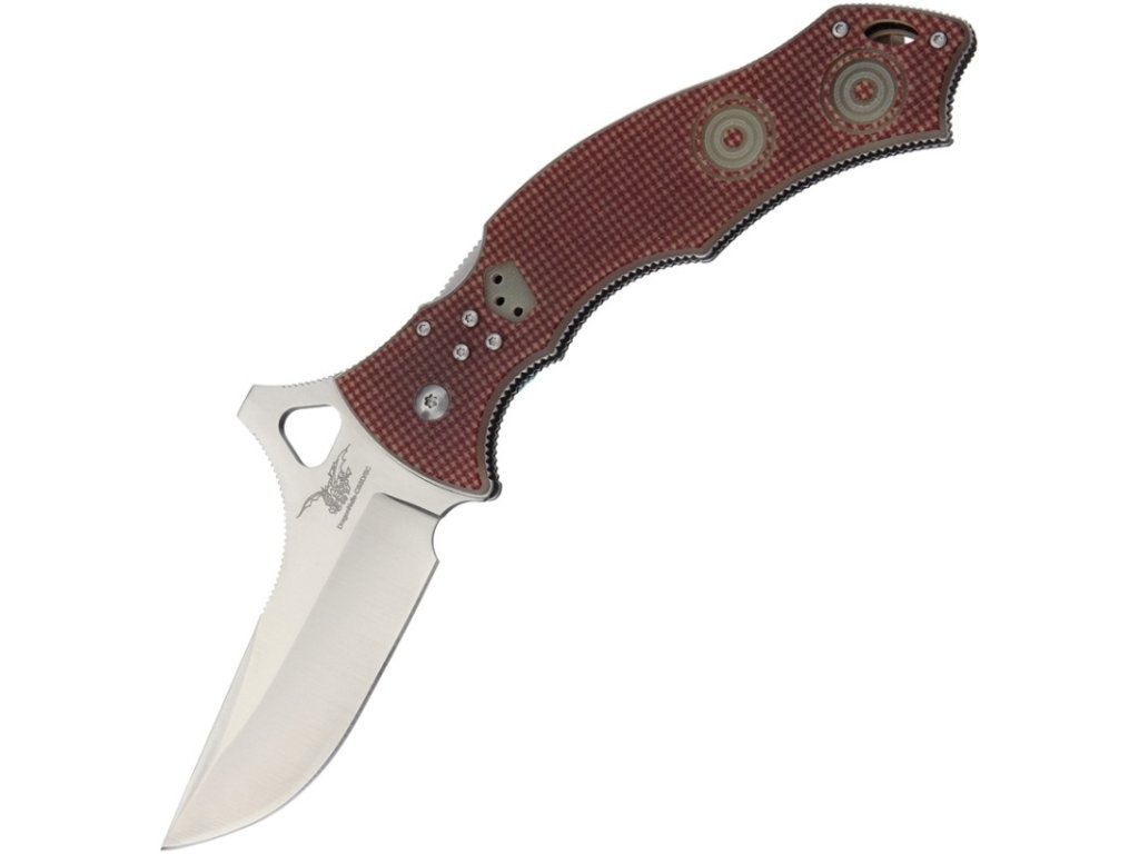 Délka v zavřeném stavu 14,6 cm. Délka čepele 9,5 cm. Čepel s matnou povrchovou úpravou z oceli 8Cr13MoV. Jednoruční otvírání. Kostkovaná červená G-10 rukojeť s otvorem na šňůrku. Nerezový kapesní klip.