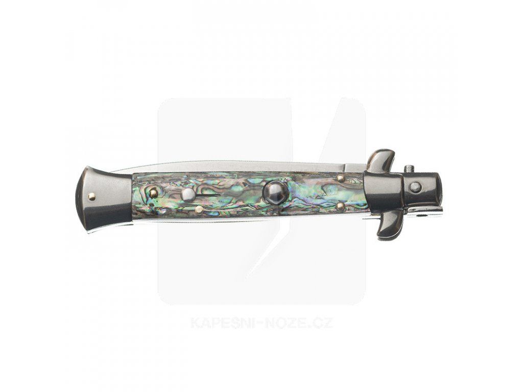 Střenka: originál perleť Abalone- je organicko-anorganický materiál, který vytvářejí někteří měkkýši uvnitř svých schránek. Perleť je tvrdý, krystalický materiál, který tvoří perly.